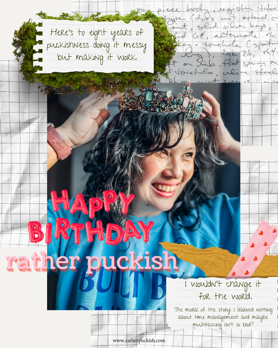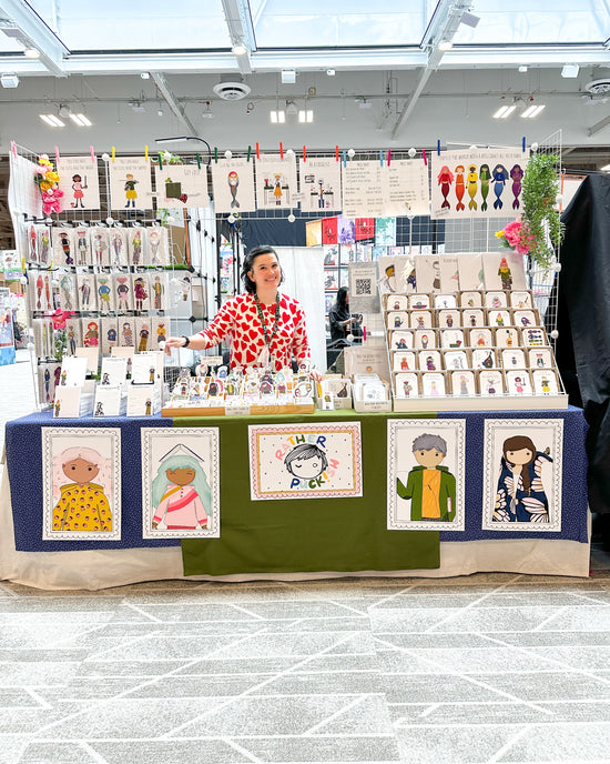 Wherever Rather Puckish goes, we (the characters and I) bring bright bold colors, main character characters, and universal ideas with a sugar lemony twist. It can be tough to put RP in a category, but that is also our superpower. Our energy is contagious, we’re a little off center, we love a good story and a witty retort. We might not be for everyone and that's ok, we're here to be us, not to be them. Rather Puckish is the kid who will always invite you to sit next to them, who can't wait to learn all about the YOUest you, and who wants to help you share it with the world. We want our cards to hit like a joke everyone's in on and our art prints to feel so niche they practically nudge and wink at you. We want puckish goodies to catch your eye from across the room and let you just know you're one of us. We're the quirky little sister with the big personality who draws you in with a sly aside and makes you want to giggle with us in the corner until our moms say we have to go home.